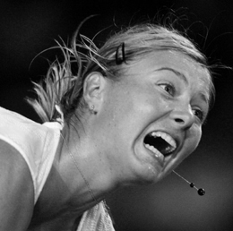 | Maria Sharapova of Russia serves to Tamarine Tanasugarn of Thailand during their tennis match at the Acura Classic tournament in Carlsbad, California on August 1, 2007 | ||||||