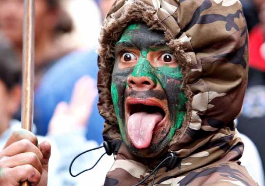 protest A member of New Zealand's Tuhoe people participates in a haka, the traditional dance of the Maori, as part of a protest march to the parliament buildings in Wellington on Wednesday. The protesters were angry about a police raid on traditional lands as well as amendments to terrorism legislation they say will limit civil rights for everyone in New Zealand. |