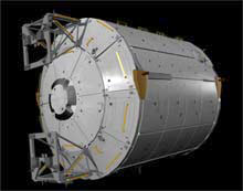 | An artist's depiction of the exterior of the Columbus laboratory. The European-built module will host a number of experiments, both inside and outside the space station. (NASA) | cbc 07122007 |